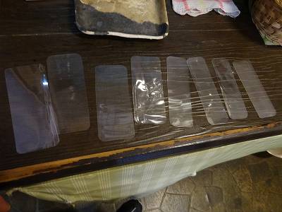 今回はメニューとかをラミネートしたヤツの切れっ端を使って