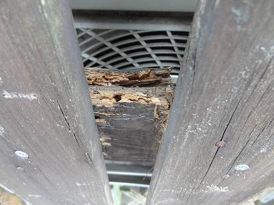 このエアコン室外機の囲いが相当劣化してしまってた。