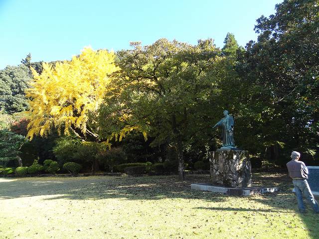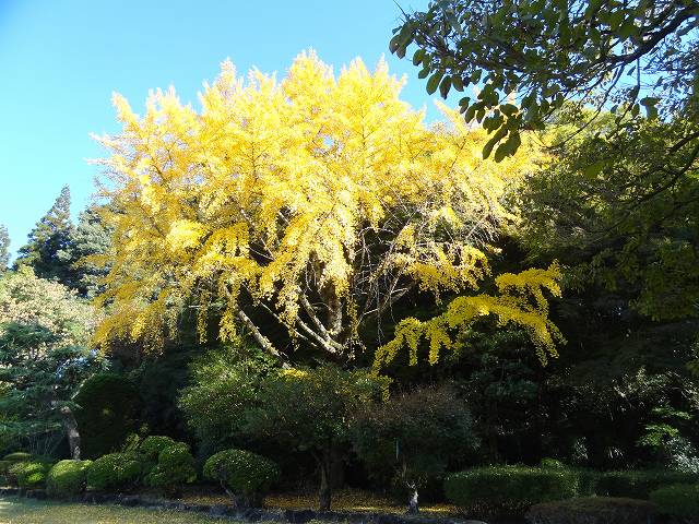 奥の方に立派なイチョウが色づいている。