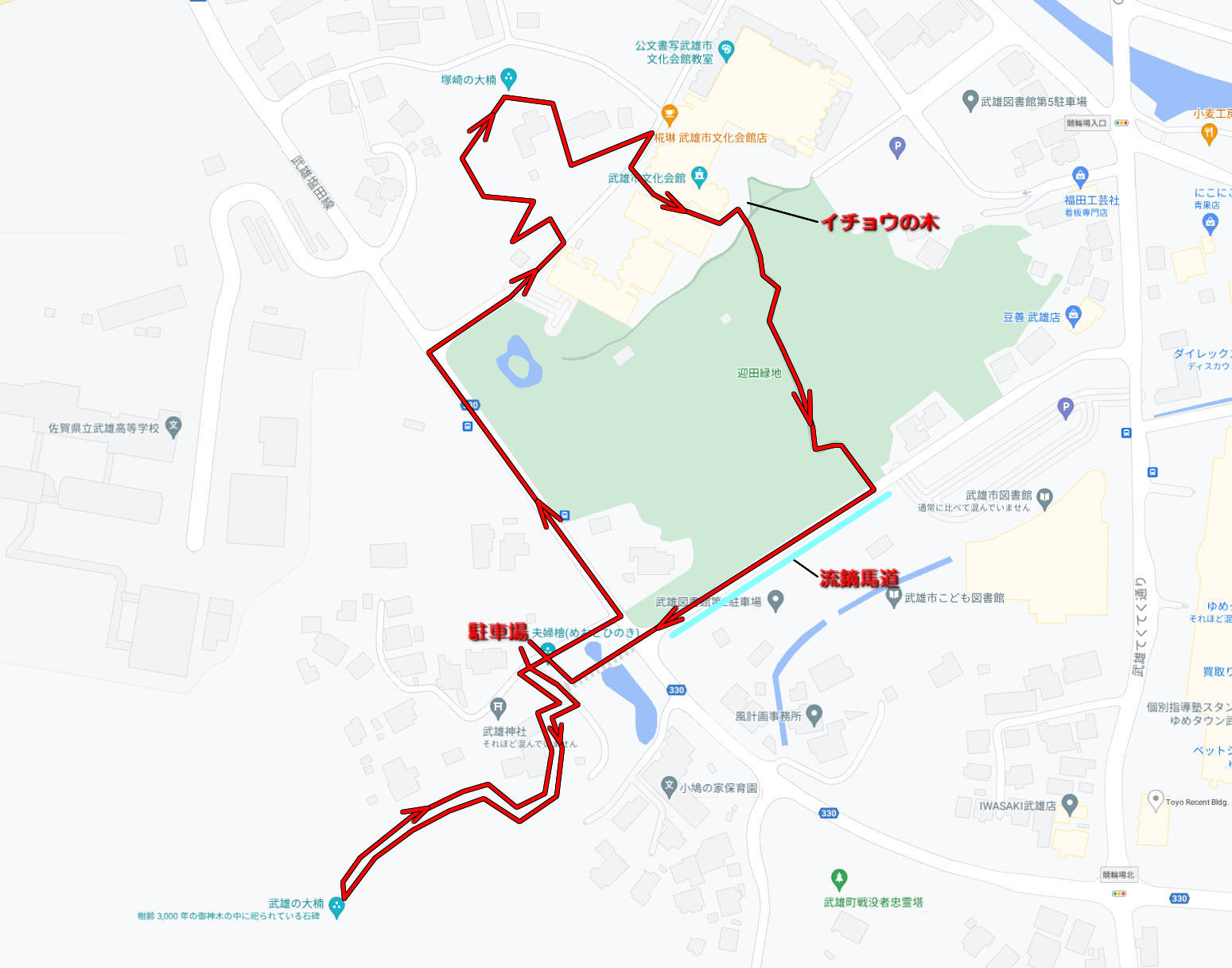 やはり思ったとおり。武雄神社前の道に出てきた。