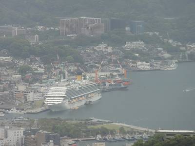 右手の重工香焼工場のクルーズ船もあそこに。