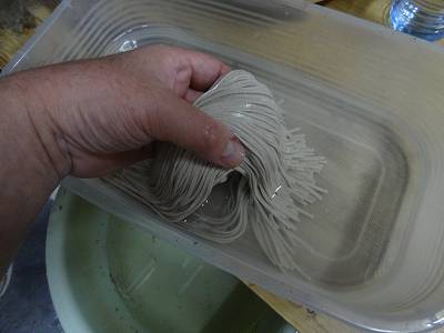 予め乾そばを水に浸けていたのではないだろうか。