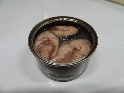 以前買ったサバの水煮缶が出てきた。