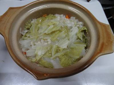 2時間後、ホタテ貝柱スープのもち麦リゾットが完成!