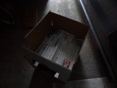 周りに隙間には丸めた古新聞をどんどん詰め込んで・・