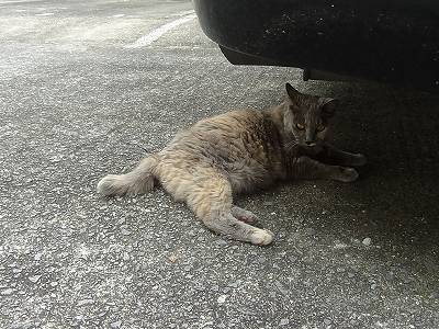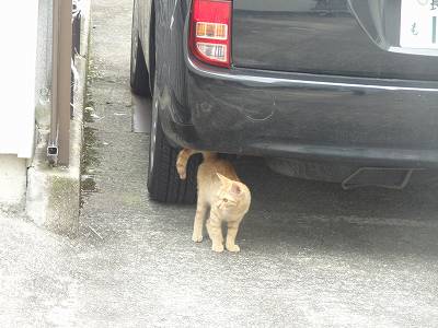 その後車の下へ行ったけど、ララには逃げられてしまった。