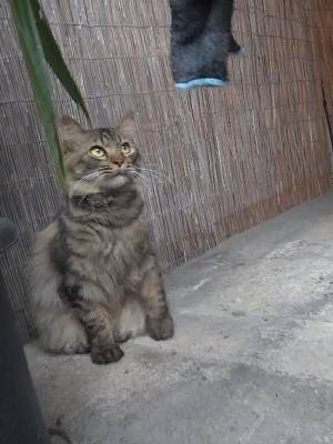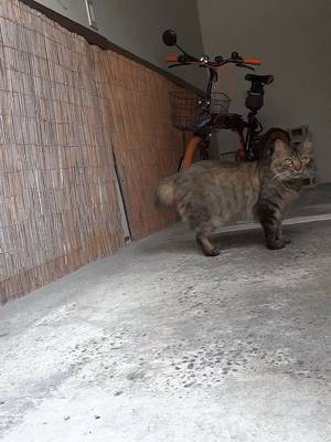 植木鉢の陰からスズメを狙ってるのを見かけた。
