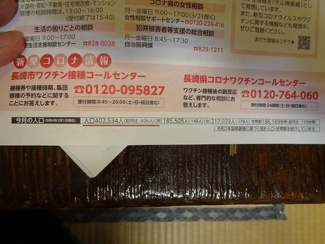 ちなみに今月の長崎市の人口は400,243人。