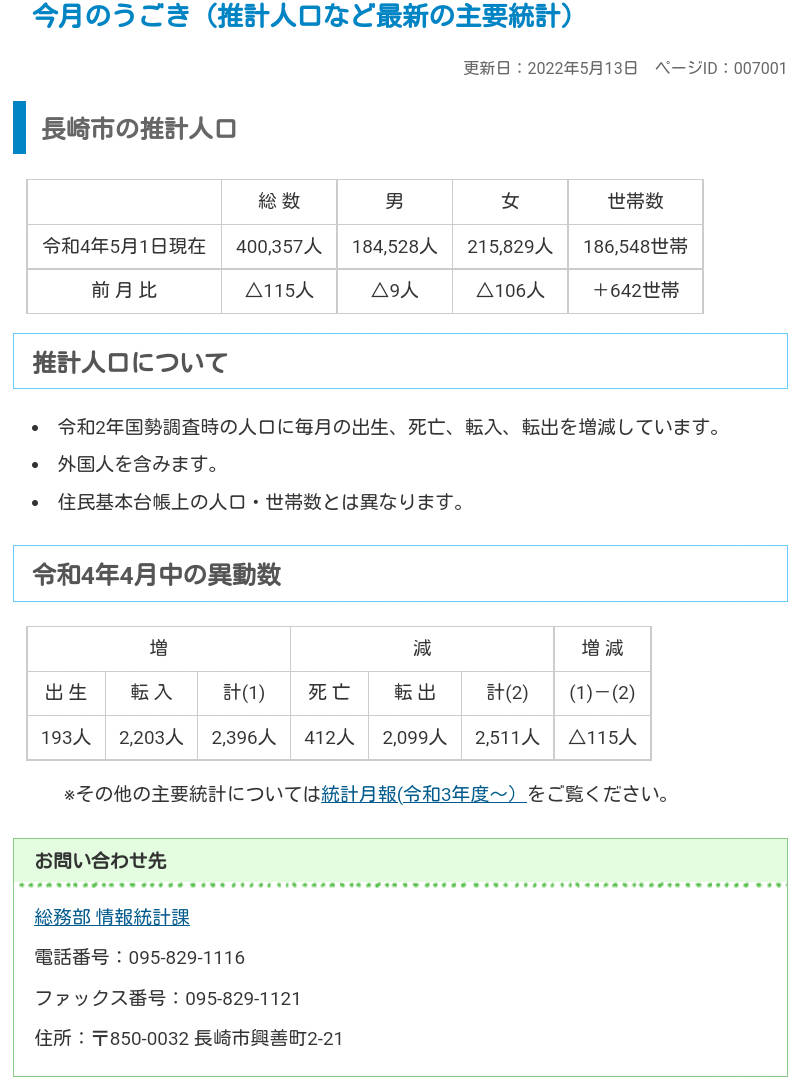 長崎市の最新の人口見るだけなんだけどね。