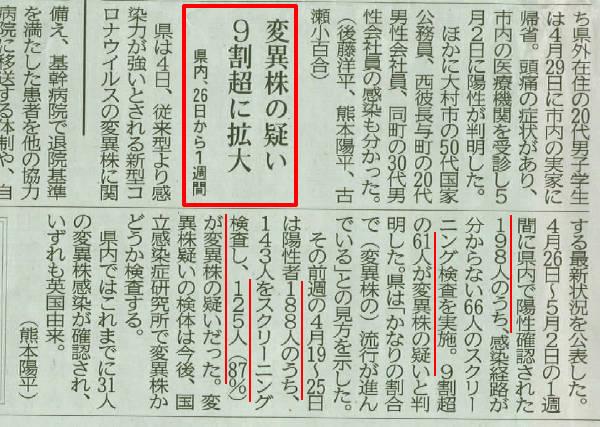 「1週間の陽性確認された198人中感染経路不明者66人の9割が変異株疑い」