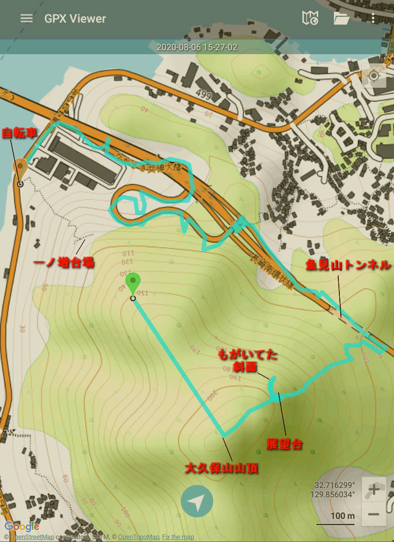 今回の経路(途中からGPSの記録をした)