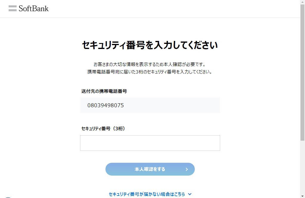 メールで自分の携帯にセキュリティ番号が送られてきたので
