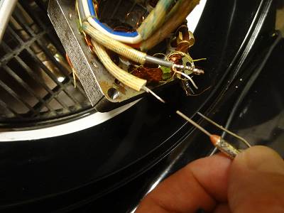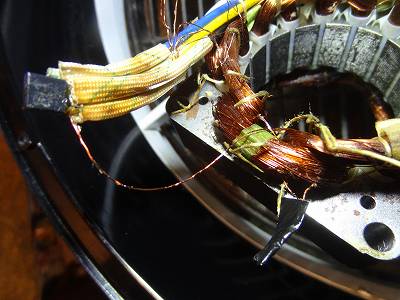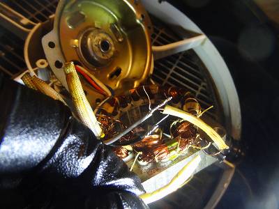 束ねてモーターコイルに巻き付けている線をニッパーでプチプチ切って・・