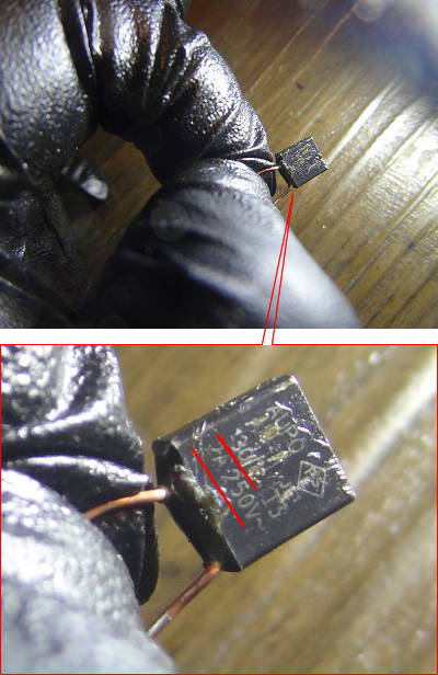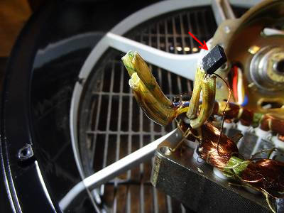 観察してみるとどうもこの黒いのが温度ヒューズみたいだ。(たぶん)