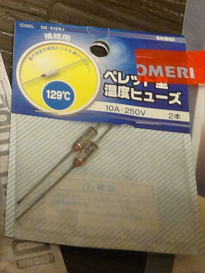 さあ、今度はこの温度ヒューズと同等品を探してこねばならない。
