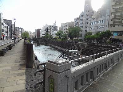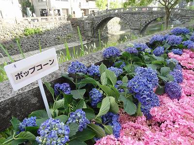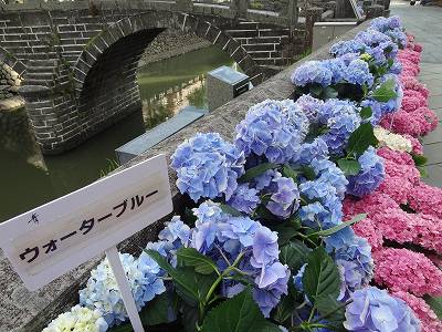 去年までは中島川の両岸いっぱいに鉢を並べてたけど、