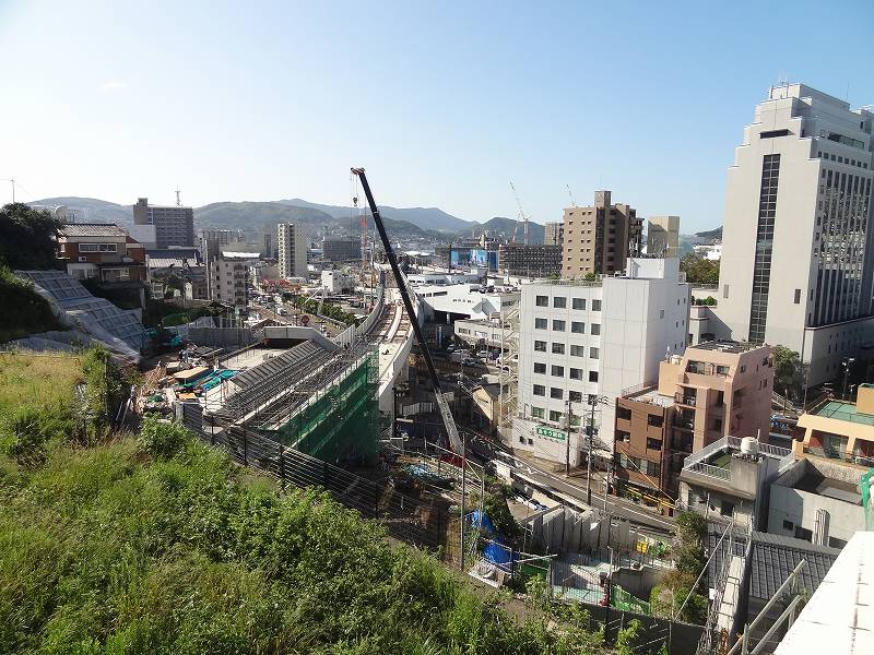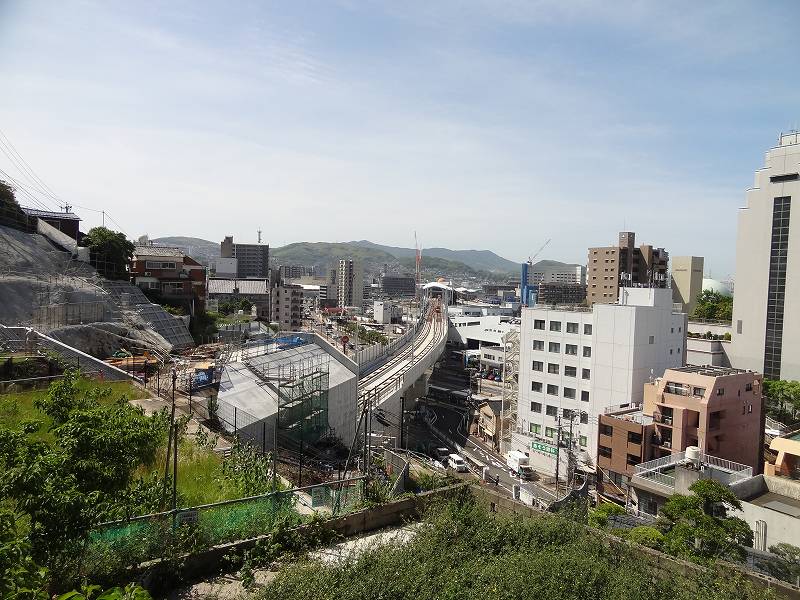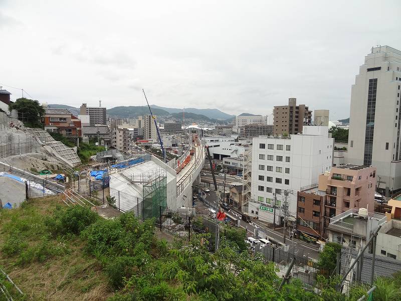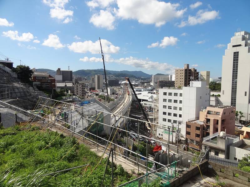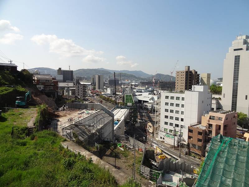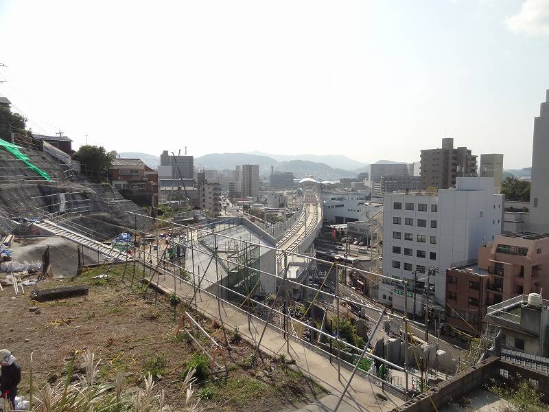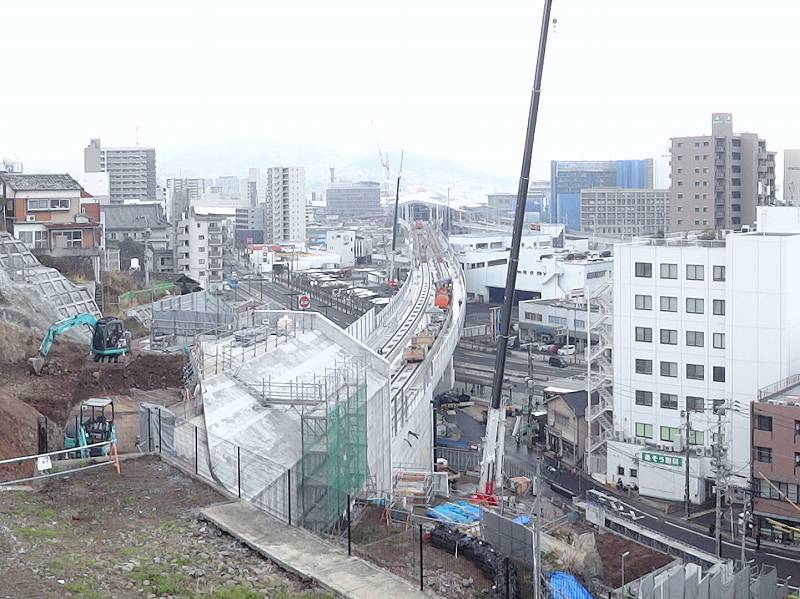 御船蔵町のトンネルが開通して、駅への高架工事が活発に。