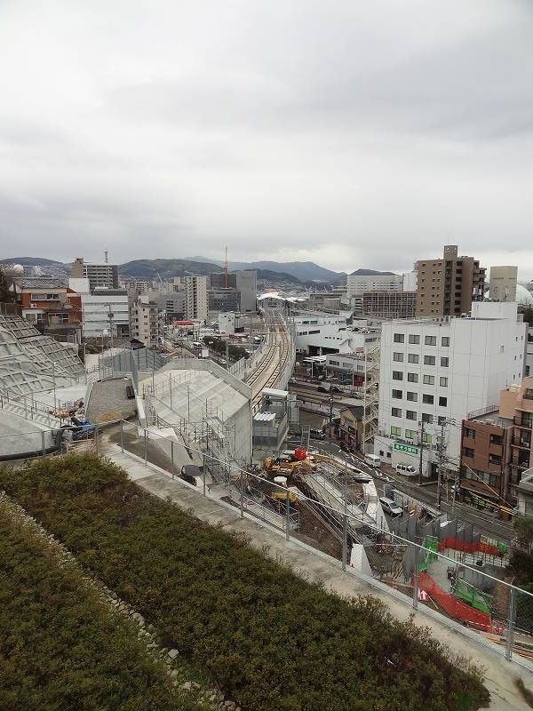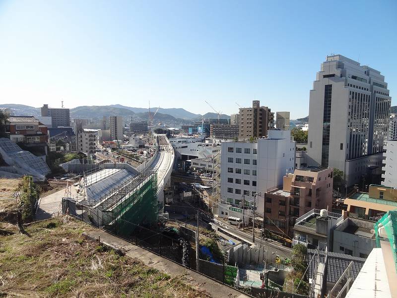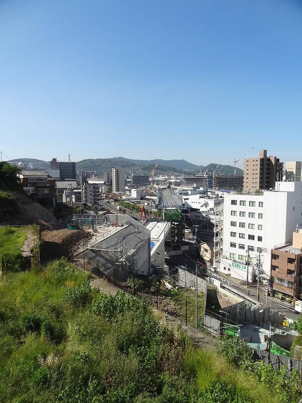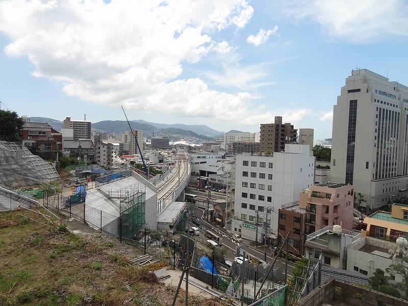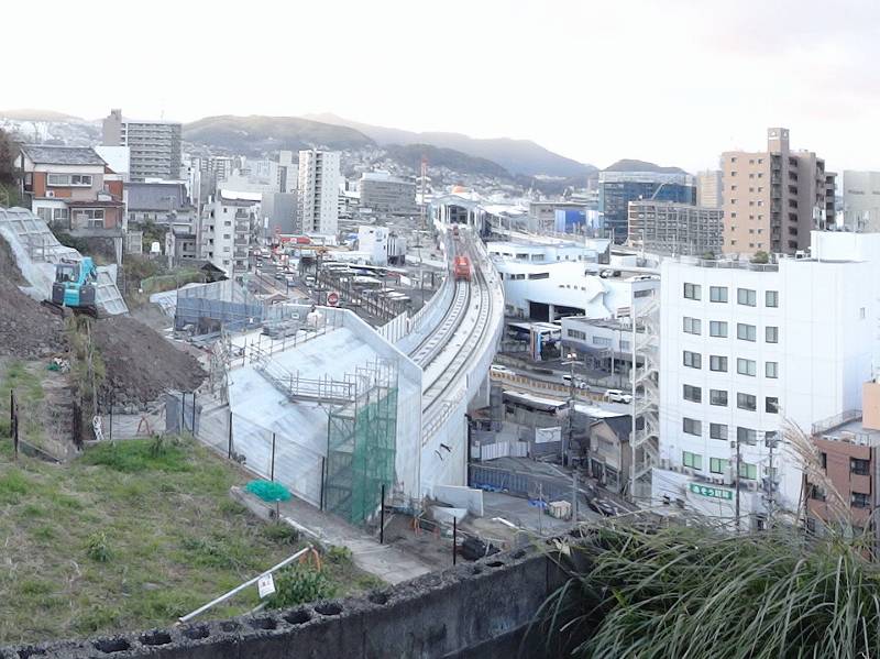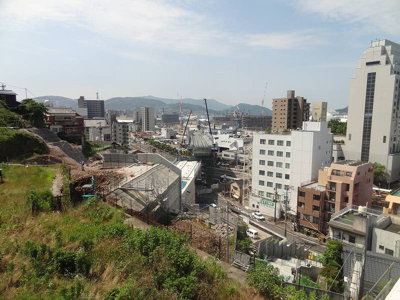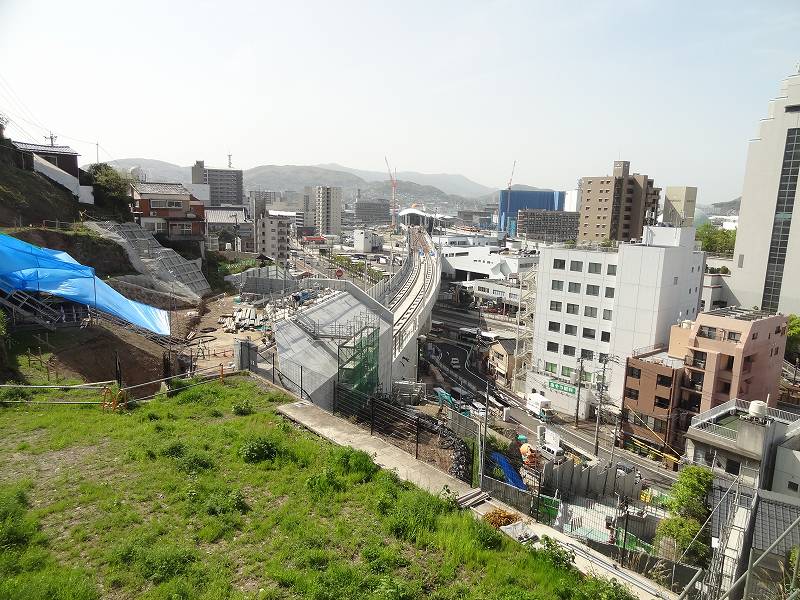 御船蔵町のトンネルが開通して、駅への高架工事が活発に。