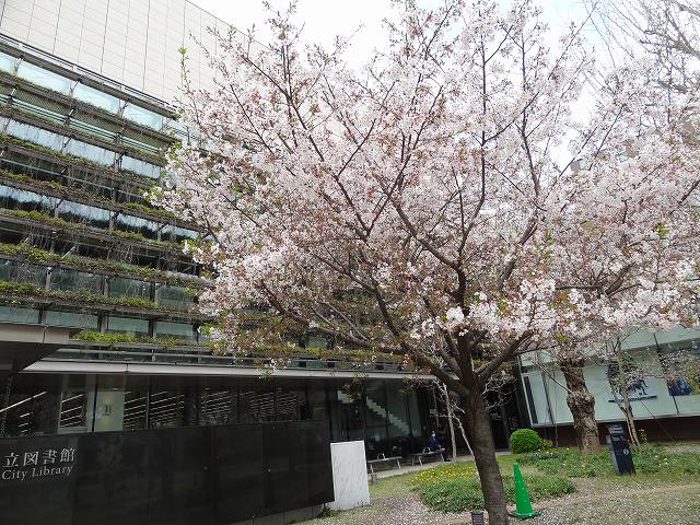 図書館の桜!(本返しにきたので)