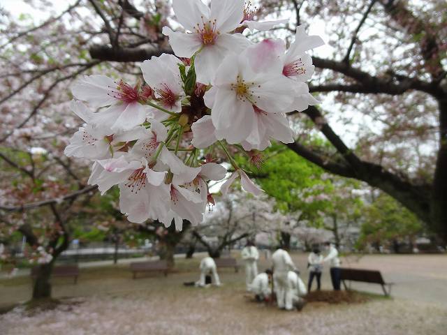ちょうど職員の方々が新たな桜の植樹作業をされてた。