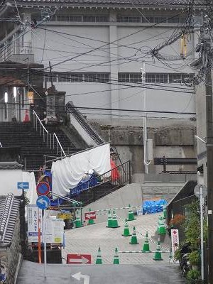 急斜面に立ってるお寺だけど、極力なだらかに抑えた
