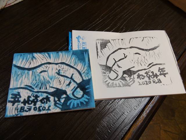 年賀状のゴム印彫り。
