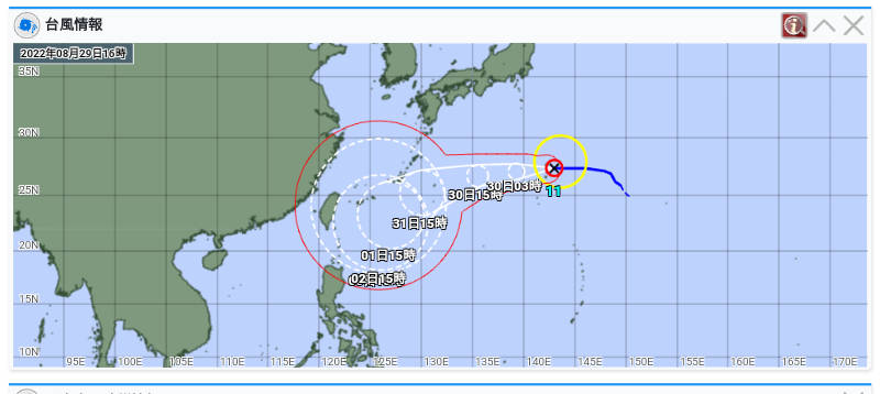 先日見た時は九州に向かってきてた台風11号。