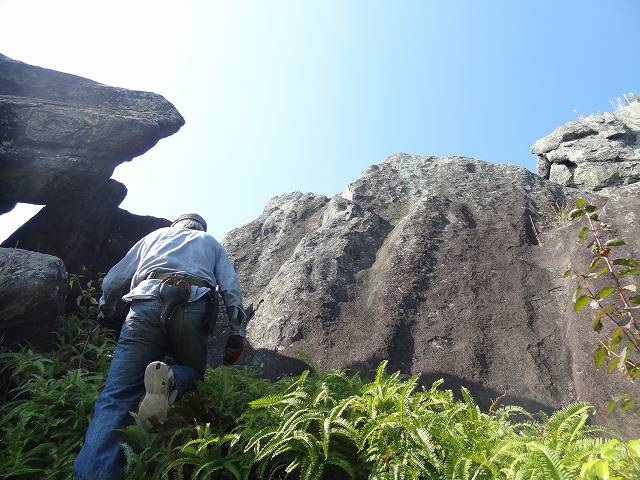のぼり始めて5分ほどで目的の岩に迫ってきた。