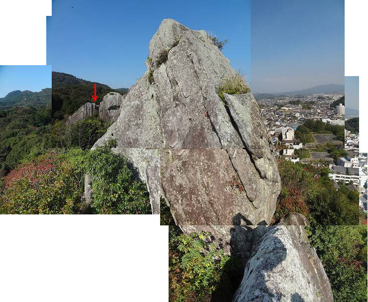 位置的には石段の上の方はさっきの岩山の踊り場辺りだ。