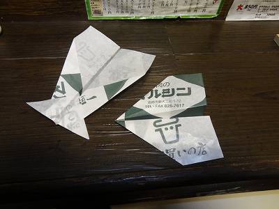 つーわけで、定番のイカ飛行機(左)とヘソ飛行機を折った!