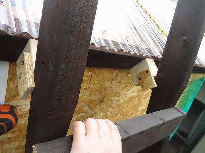 今までのは屋根ができるまでの間の仮受けで壁に付けてたんだけど