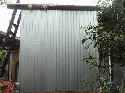 つーわけで、ガルバ角波板をヒイヒイ言いながら張り付けて