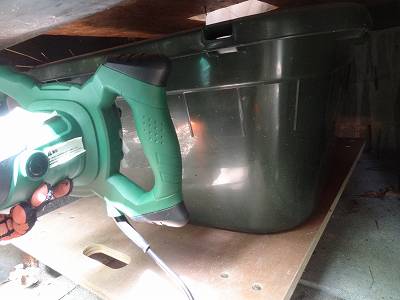 便槽に撹拌機のバーを差し込む切り欠きを作った。