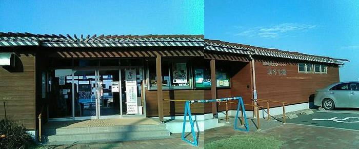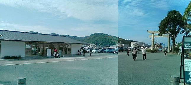 左手に見える建物が「海の道むなかた館」でやんすかね。