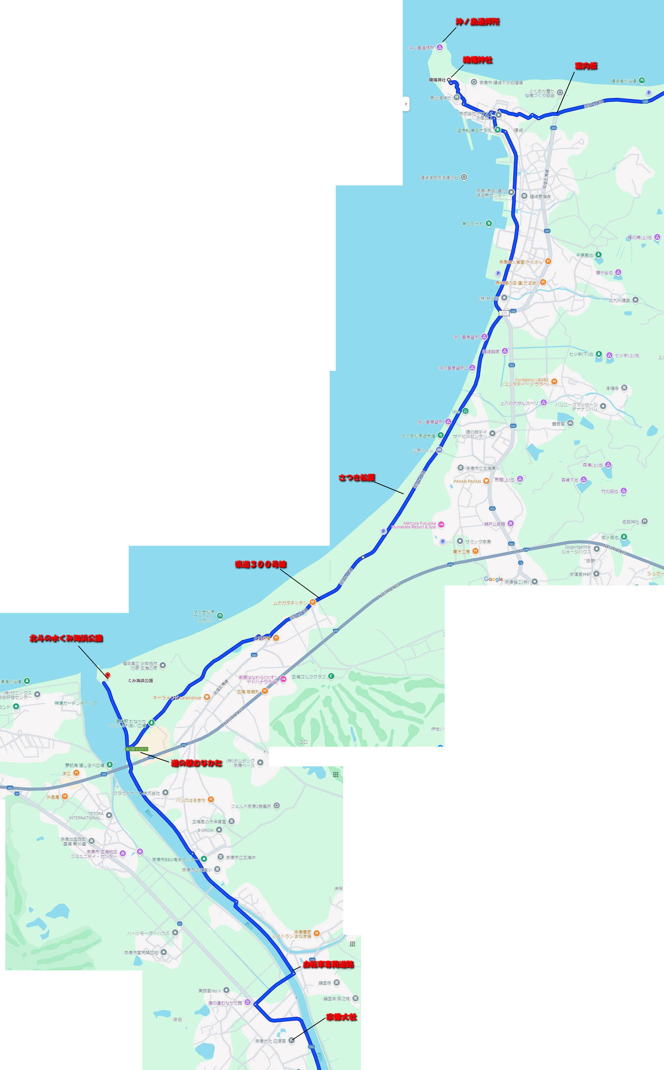マーチェルがうんちく垂れてる間に松原を抜けたでやんす!(13:50)