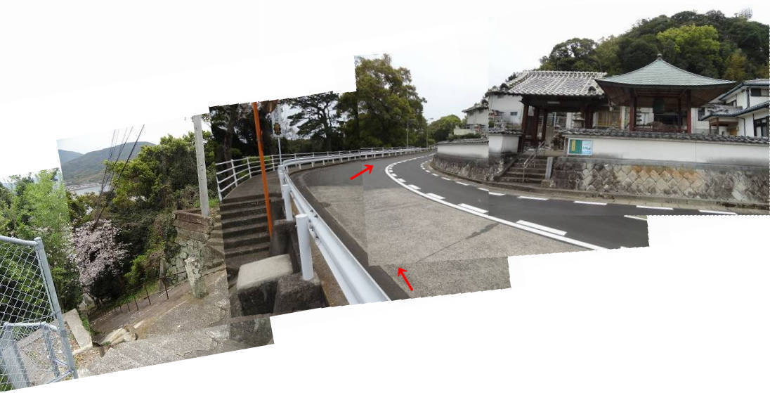 マ「車道跨いで石段が下まで続いてるぞ。」