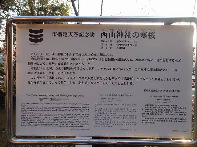 元日桜(寒桜)と日本で最初に植えられたと言うザボンの木が有名だ。