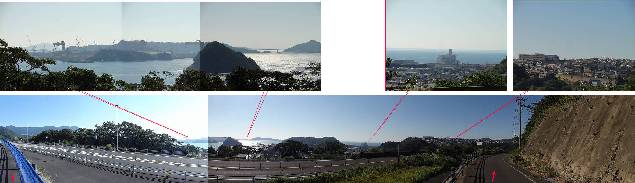 香焼重工クレーン。 伊王島大橋。 ごみ処理西工場。ポートウエストみなと坂。