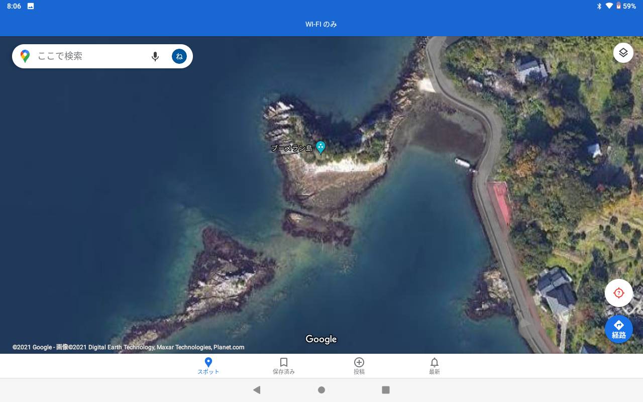 衛星写真で見てみると、確かにブーメランぽい形をしてる。