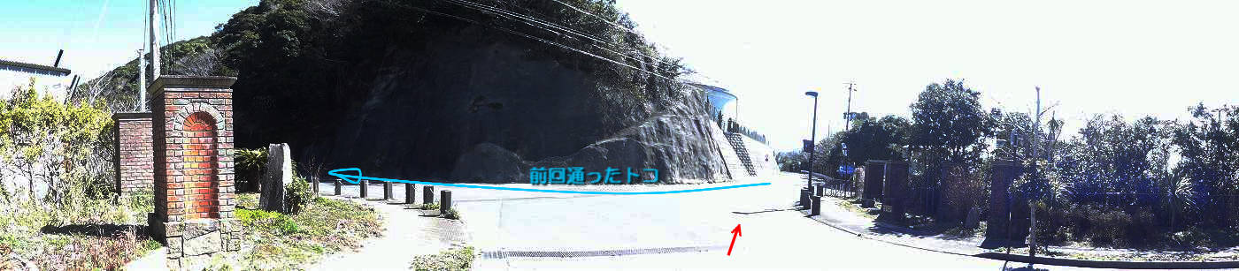 前回は正面の支道から出てきたから(青矢印)