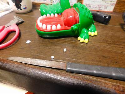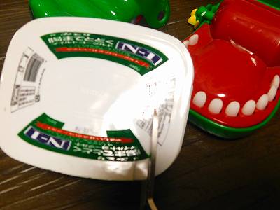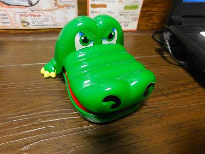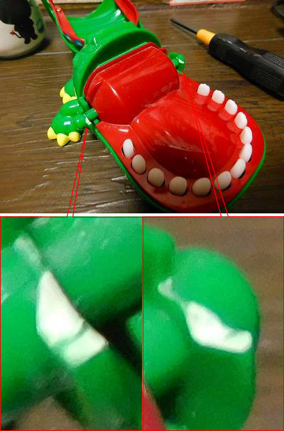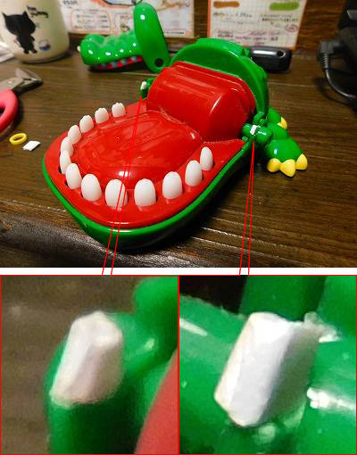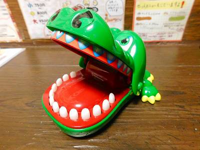 ハズレの歯を押したらガブッと口が閉じるおもちゃだ。