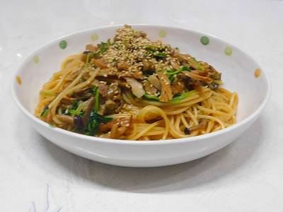 きのこパスタにして食べた!(豆苗は最後に入れて余熱で火を通した)